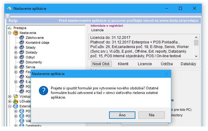 Tento postup presnejšie popisuje vytvorenie novej databázy v aplikácii iKelp Predajca s prenesením nastavení, kontaktov a kariet z pôvodnej databázy. Vznikne tzv. znulovanie, pretože sa neprenášajú žiadne doklady. Číslovanie dokladov v takto vytvorenej databáze začne od čísla 1.