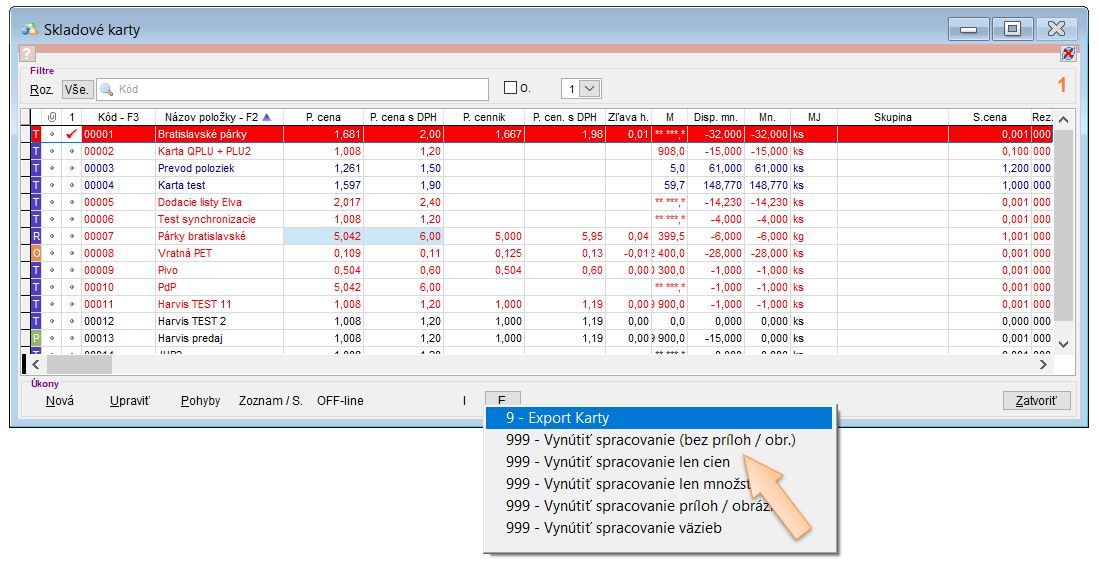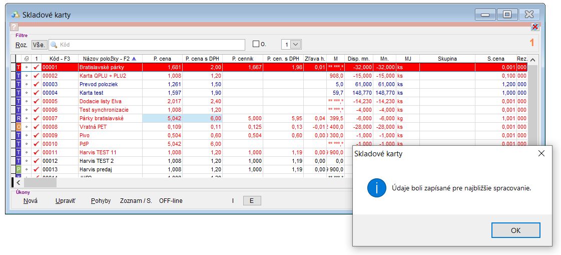 Pozor, jedná sa o zmenu na skladovej karte, s ktorou sa na pokladňu posielajú aj ďalšie vlastnosti skladovej karty a tým sa v závislosti od počtu kariet vygeneruje niekoľko tisíc úloh. Z toho dôvodu odporúčame túto zmenu vykonať včas, aby sa uvedený zmeny stihli preniesť do databázy predajne a bolo tak možné však spustiť predaj!
