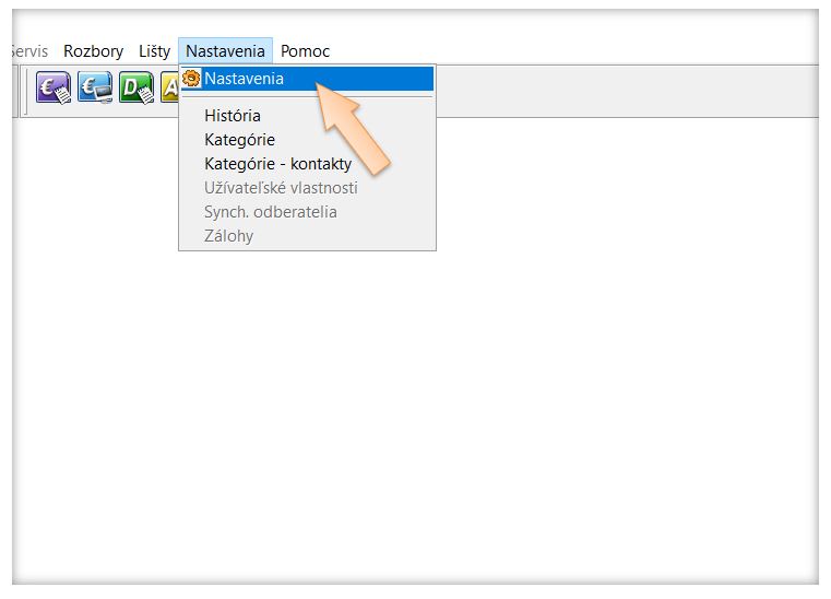 1. Kliknite v menu aplikácie na Nastavenia -> Nastavenia.