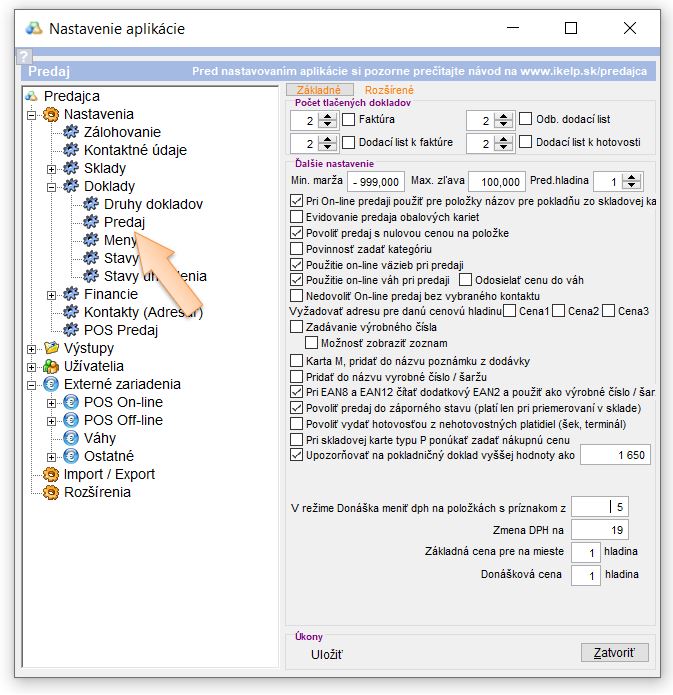 3. Nastavenie príznaku pre automaticú zmenu DPH na položke pri objednávke so sebou alebo donášku