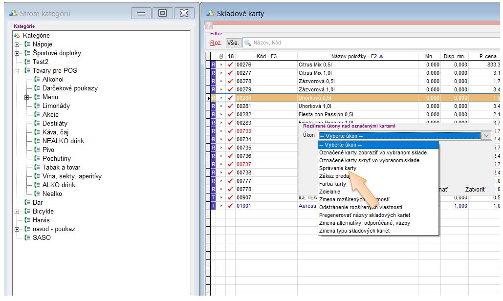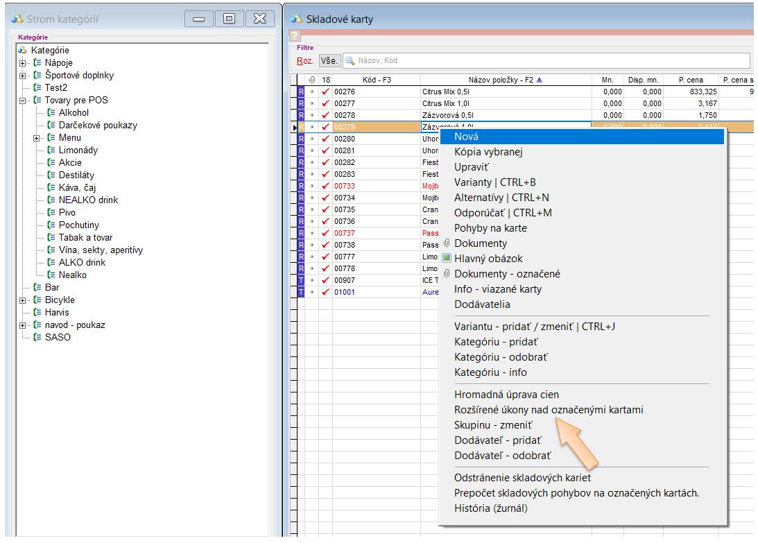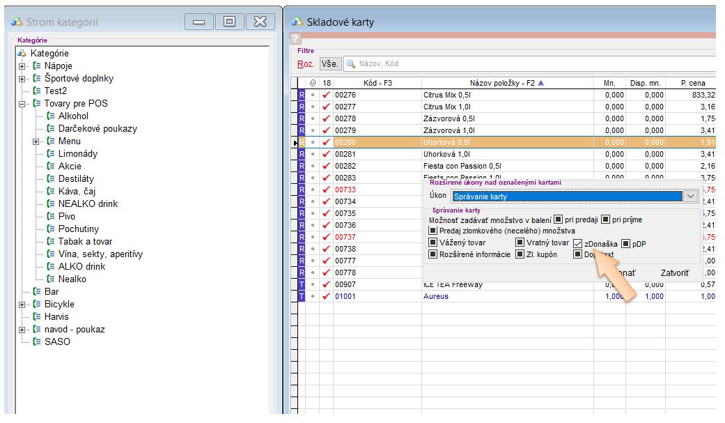 Príznak na karte zDonáška, je možné na kartách nastaviť aj hromadne a to pomocou kategórie. Takýmto postupom si viete zobraziť strom kategórií priamo v zozname kariet.