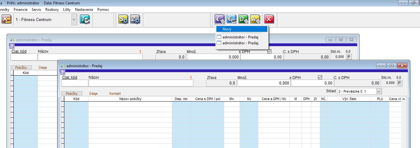 • Nové okno otvoríte kliknutím pravého tlačidla myši na ikonu predaja a kliknete na Nový.