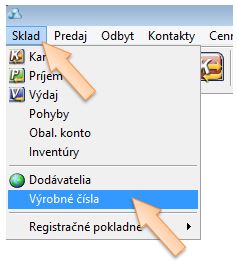 - V menu aplikácie vyberte možnosť Sklad -> Výrobné čísla.