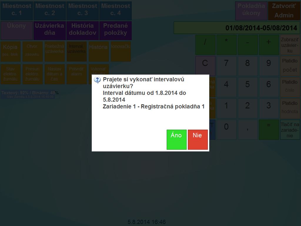 - Kliknutím na tlačidlo OK potvrdíte vytlačenie uzávierky na zariadení.