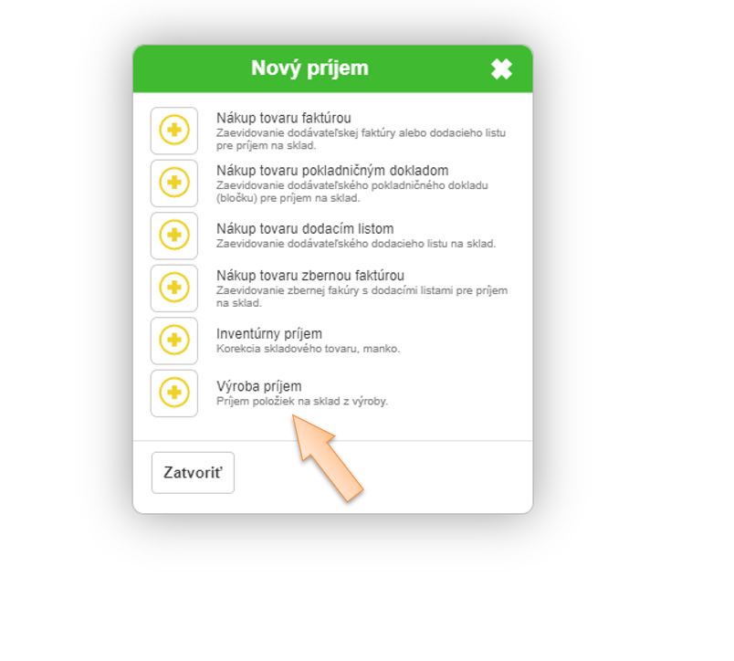 3. Vyberte typ Výroba príjem.