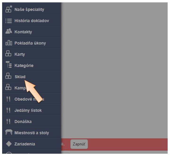 1. Kliknite na možnosť Sklad v menu aplikácie.