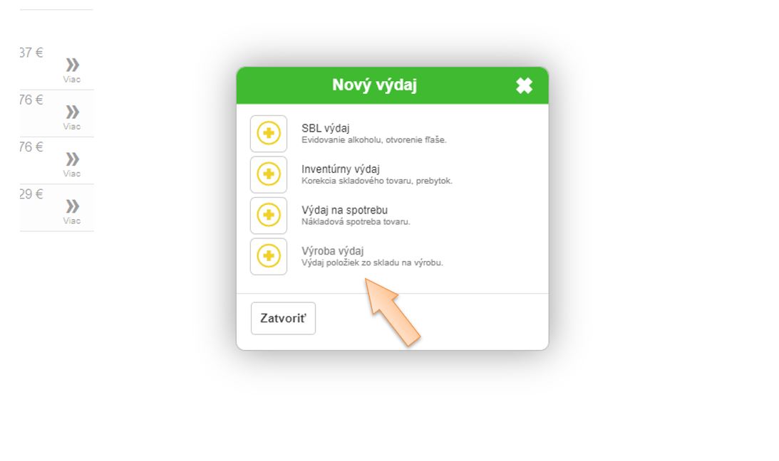 Výdaj tovarov / surovín na výrobu