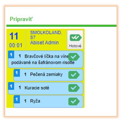 Pri následnom účtovaní ak obsluha vyberie jedlo, zobrazí sa jej kategória príloh, ktorá sa automaticky priradí k danému jedlu.
