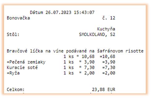 Tlač prílohy k hlavnému jedlu na bonovaciu tlačiareň