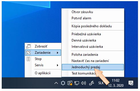 3. Vyberte možnosť Zariadenie - Jednoduchý predaj.