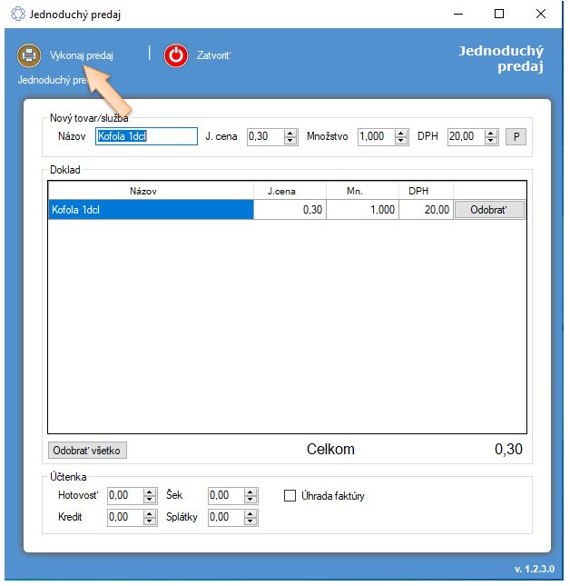 7. Kliknite na tlačidlo Vykonaj predaj.