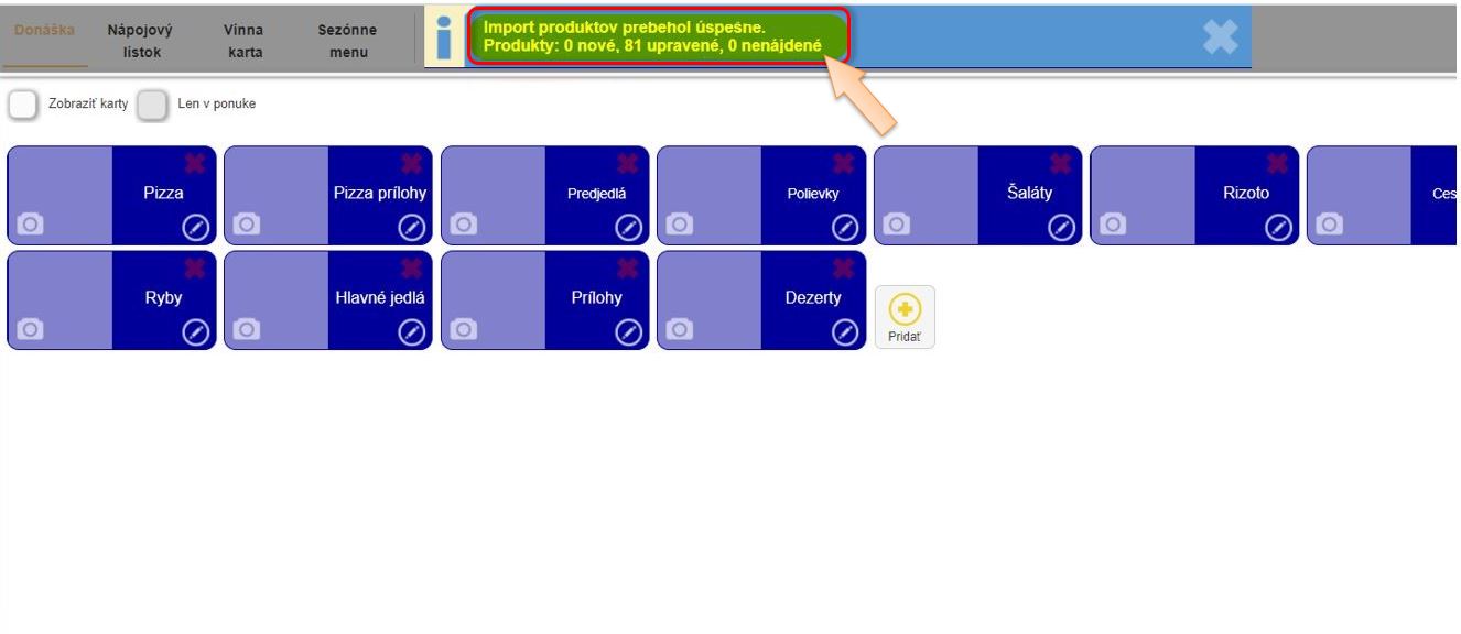 a. Import produktov prebehol úspešne