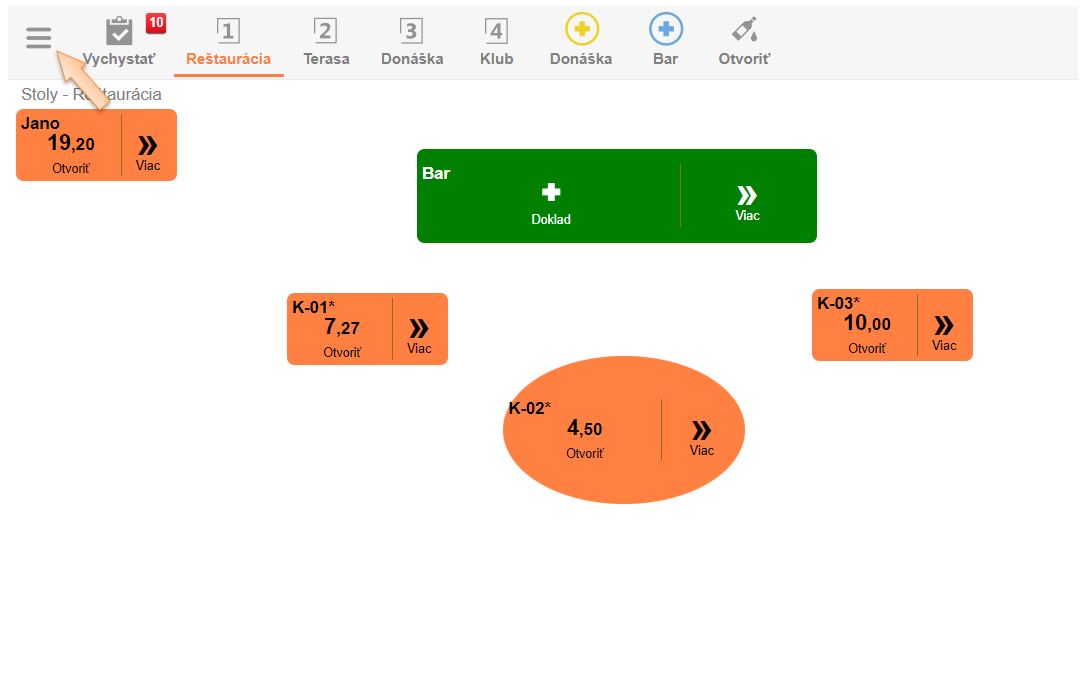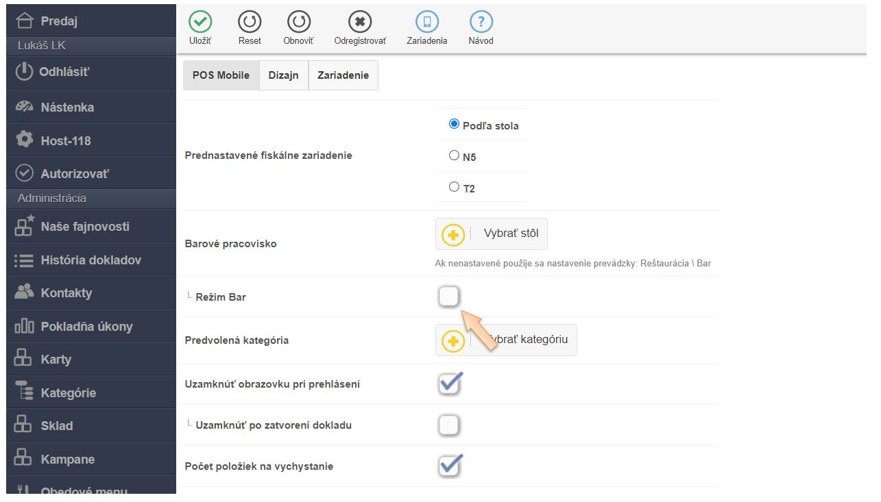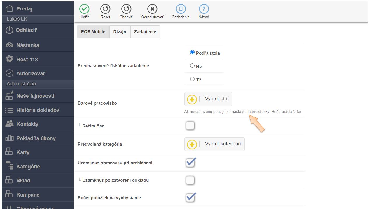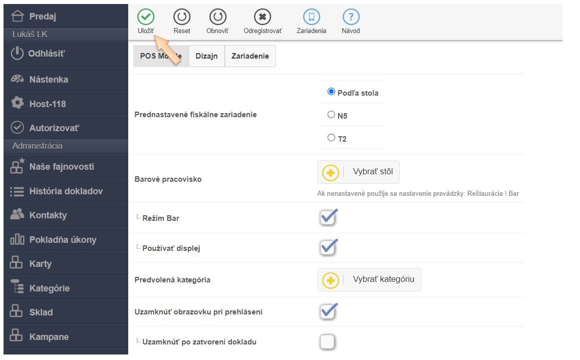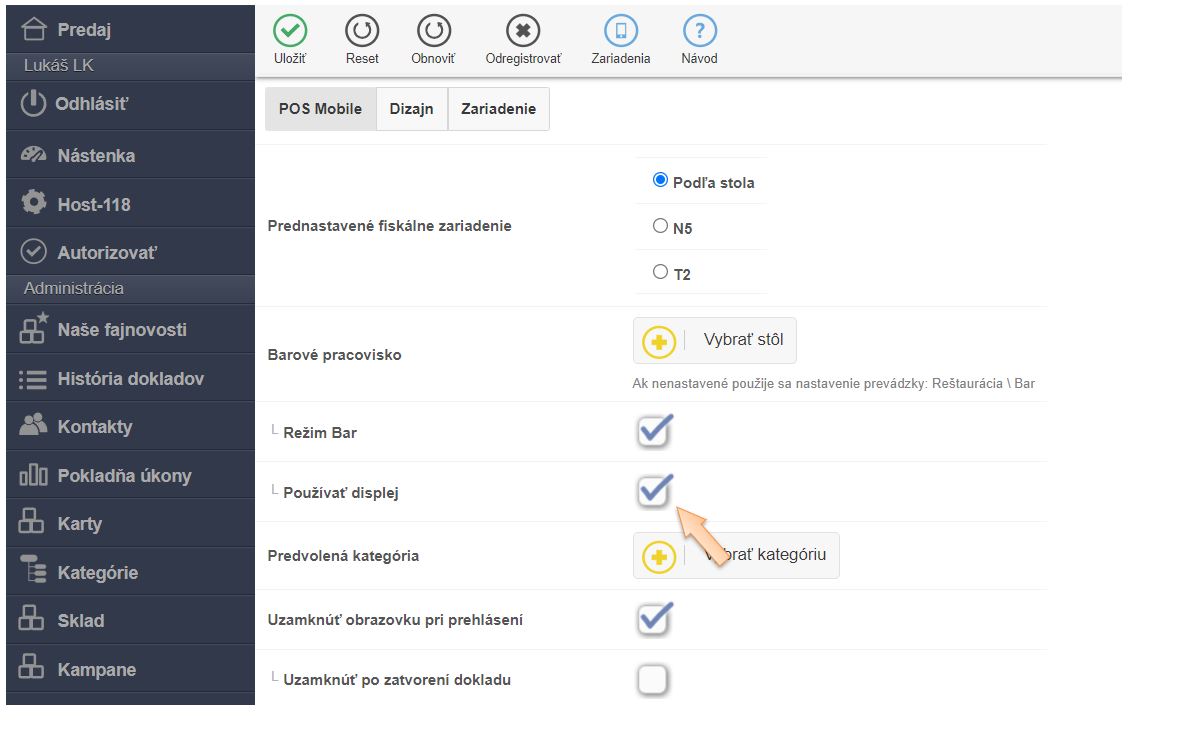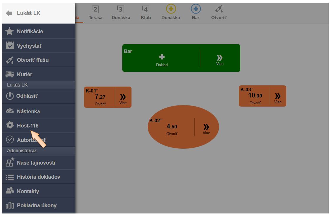 1. V menu aplikácie kliknite na nastavenia zariadenia POSm alebo HOST.
