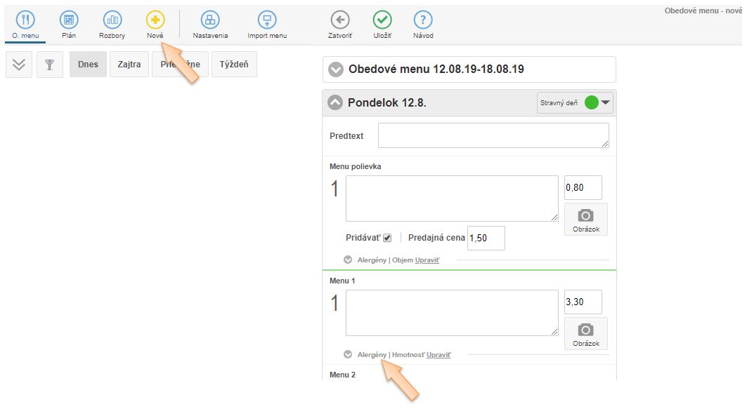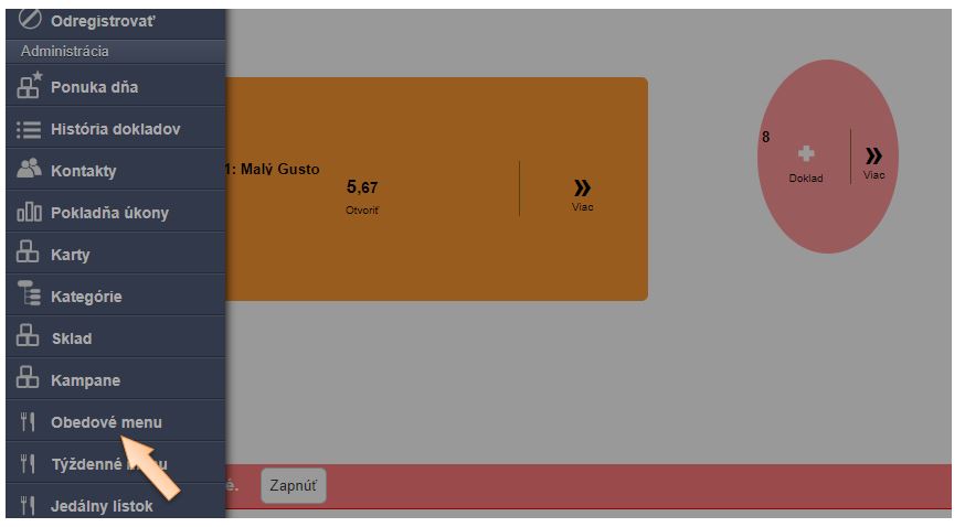 2. Z ponuky vyberte možnosť Obedové menu.