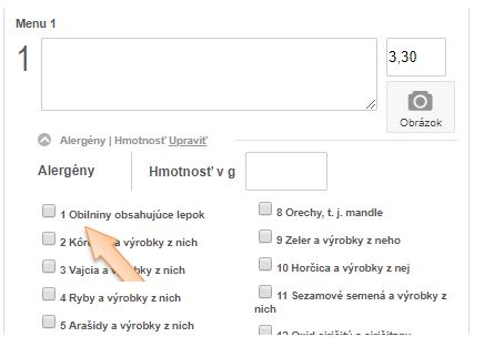 • Ak máte v aplikácii nastavené, že sa lístok zobrazuje aj na Vašej stránke reštaurácie, alergény sa zobrazia aj tam