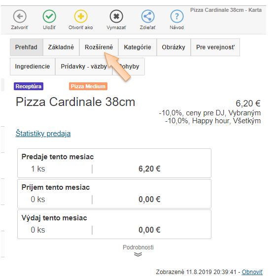 1. Alergény sa definujú v záložke Rozšírené výberom zo zoznamu. (Na jednej karte je možné definovať aj viac alergénov.)