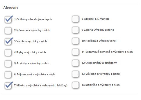 Alergény sú nastavené, kde sa zobrazujú?
