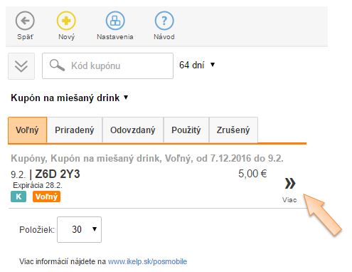 - Kupón otvoríte na úpravu kliknutím na tlačidlo Viac.