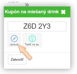 - Následne sa zobrazí kód kupónu s tlačidlom Upraviť a Tlačiť na zar.